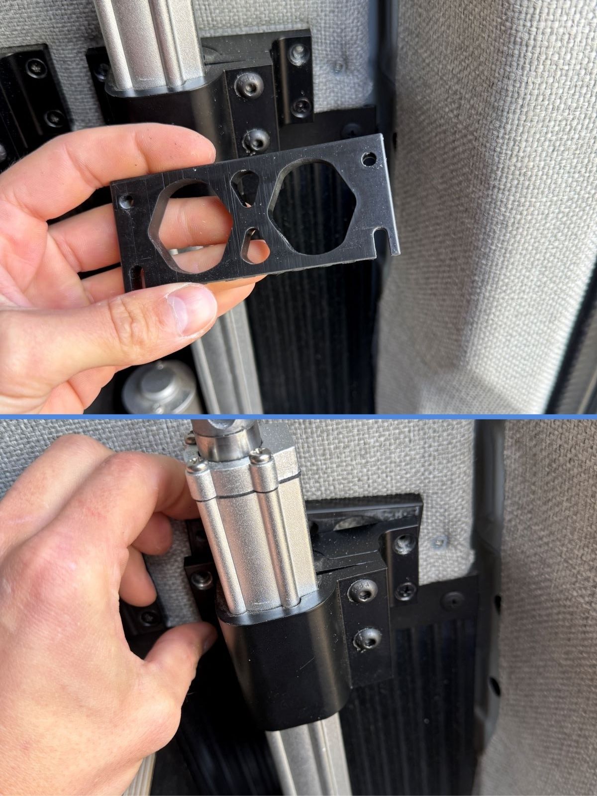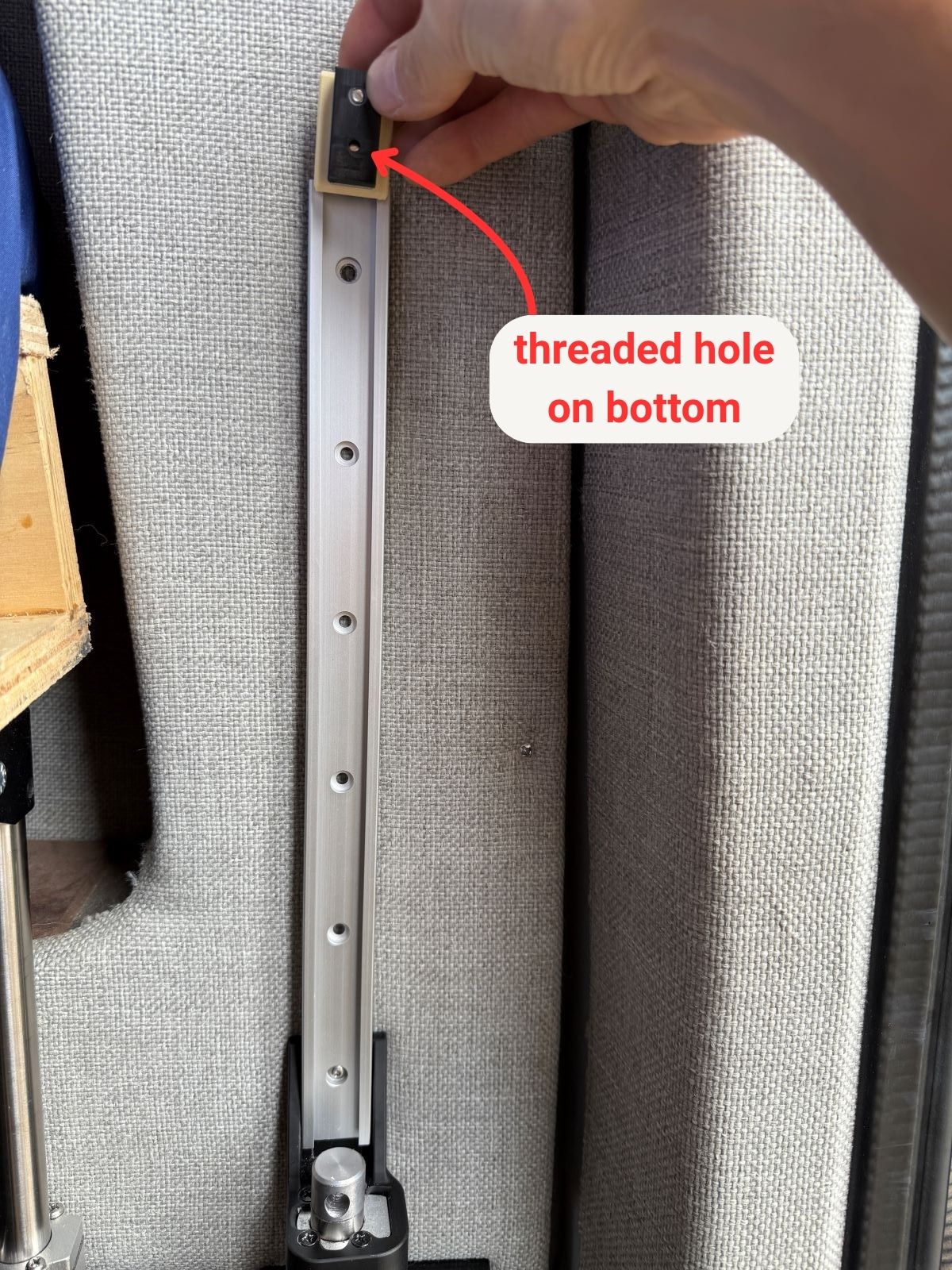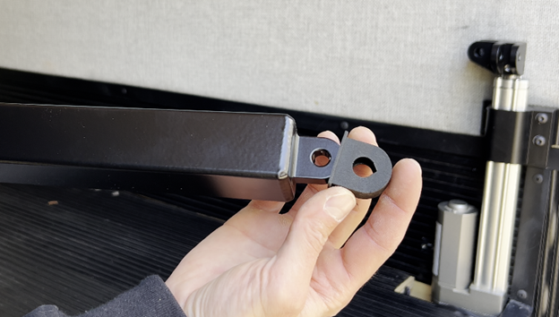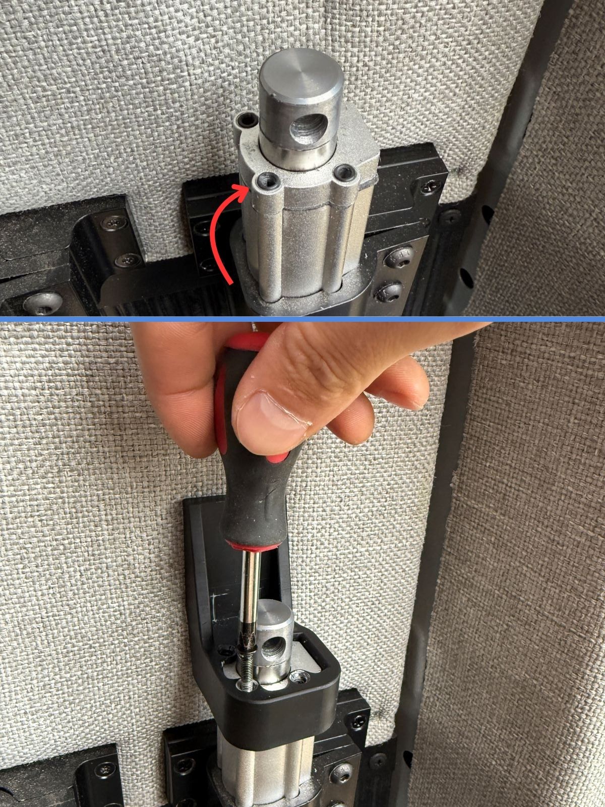 When the bed can be raised, raise the actuators with linear guides so the bi-directional joint is just below the top mounting hole. This aligns the linear guide rail with the actuator.