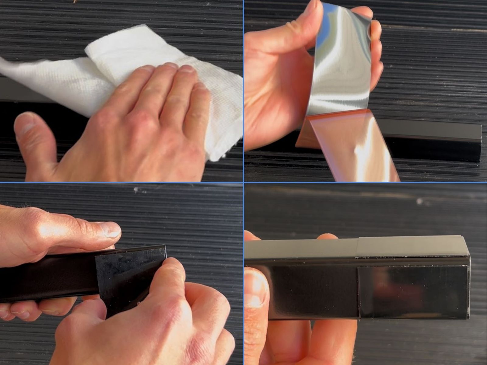 The final corner should look like the image below. Press firmly all over the tape to ensure proper adhesion.