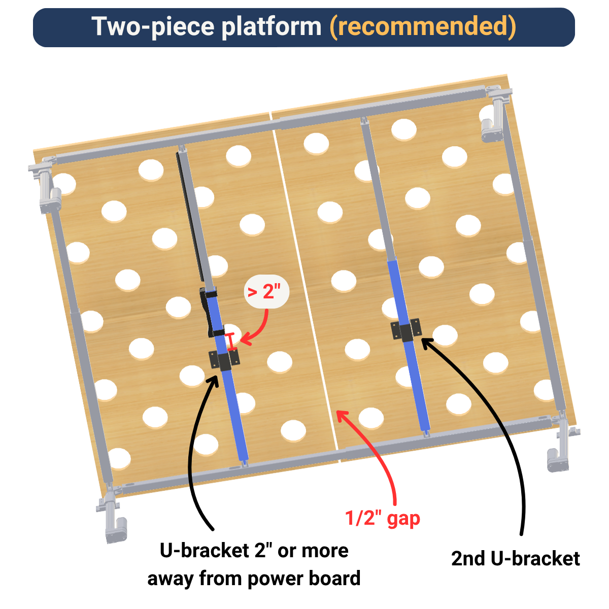 - The platform must cover all frame tubes for proper support.