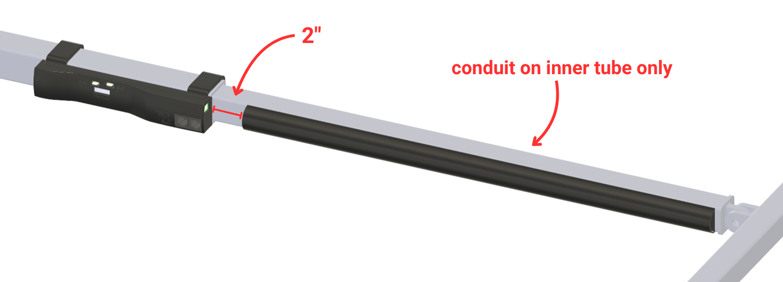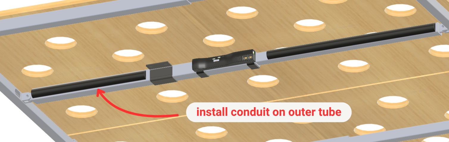 - Short-beam outer tubes -- point toward side of bed with the 12V power source