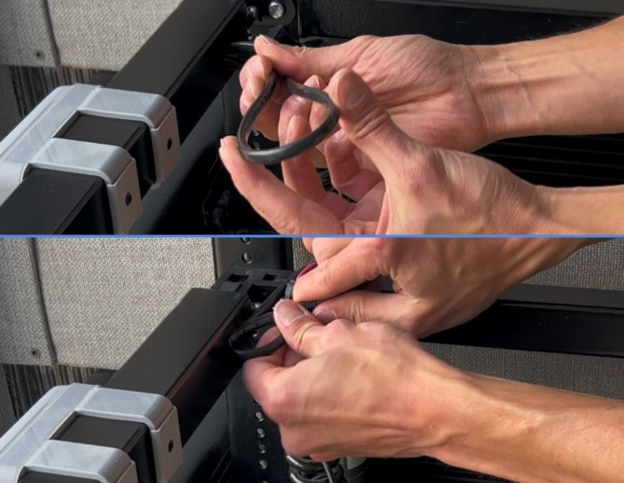🔌When pulling cables through the frame, you will notice extra wire at each corner. This is expected and will be cleaned up in a later step.