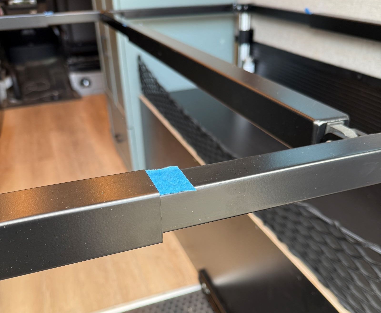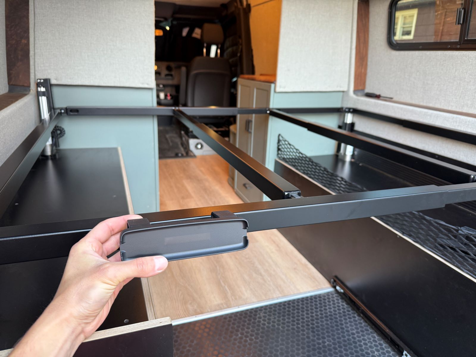 It is highly recommended to install the linear rails on the actuators located either at the rear doors or at the front of the van, whichever is easiest to access.