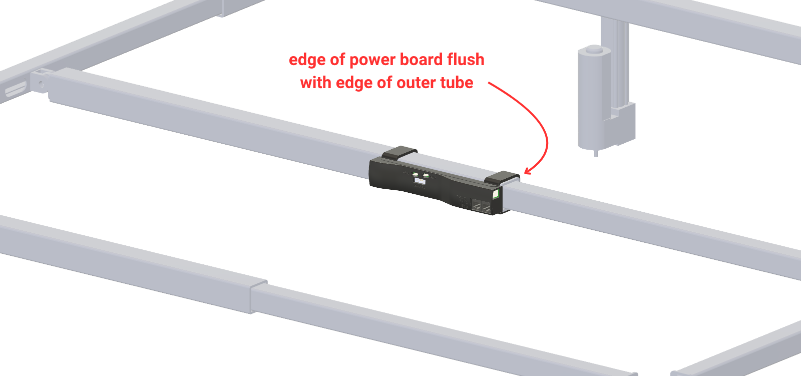 Position the power board so it is flush with the edge of the outer tube (see diagram).