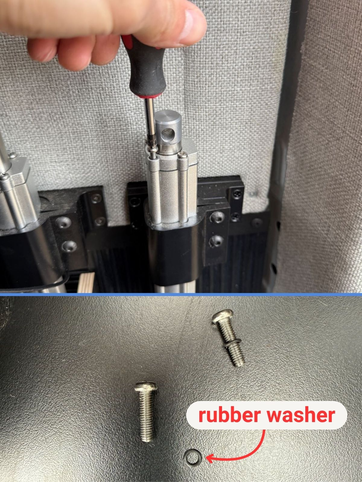 Place the rubber washers in the indents on the actuators where the machine screws were removed.