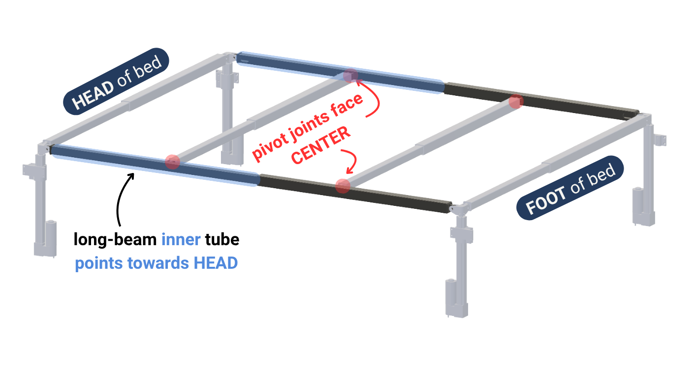 If the long-beam inner tubes do not point towards the head of the bed, the wiring will not run smoothly.