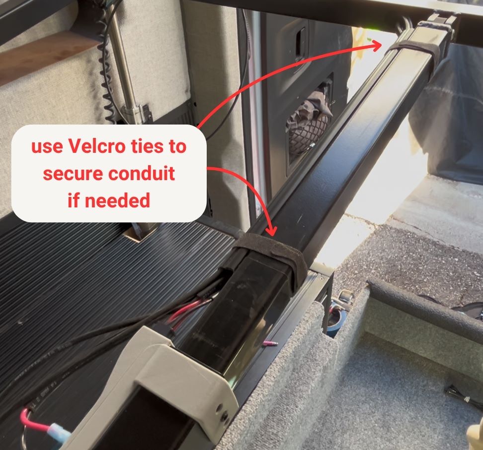 6. If the conduit won't stay closed due to cable bulk, secure with Velcro cable ties at each end.