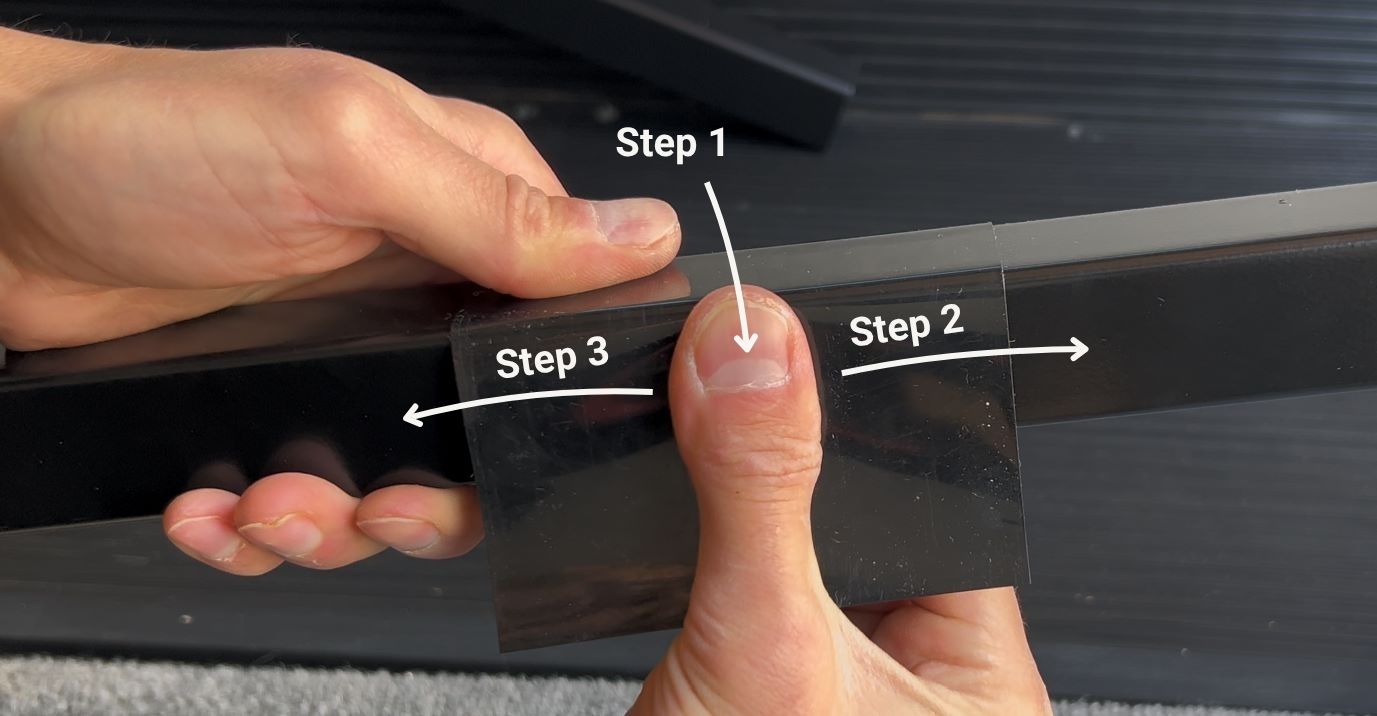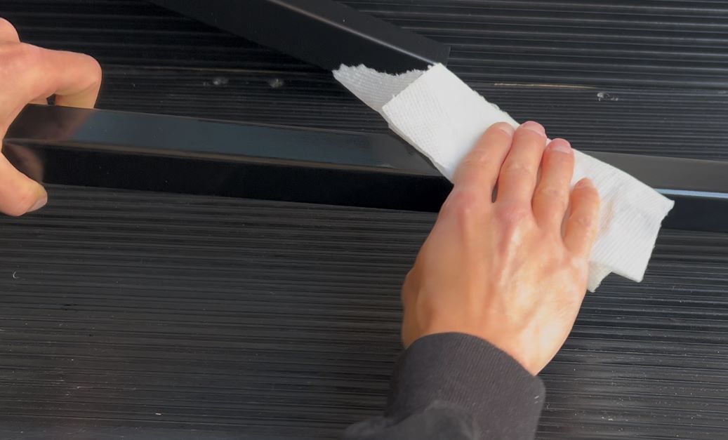 The locations you marked earlier are where the large glide tape pieces will go.