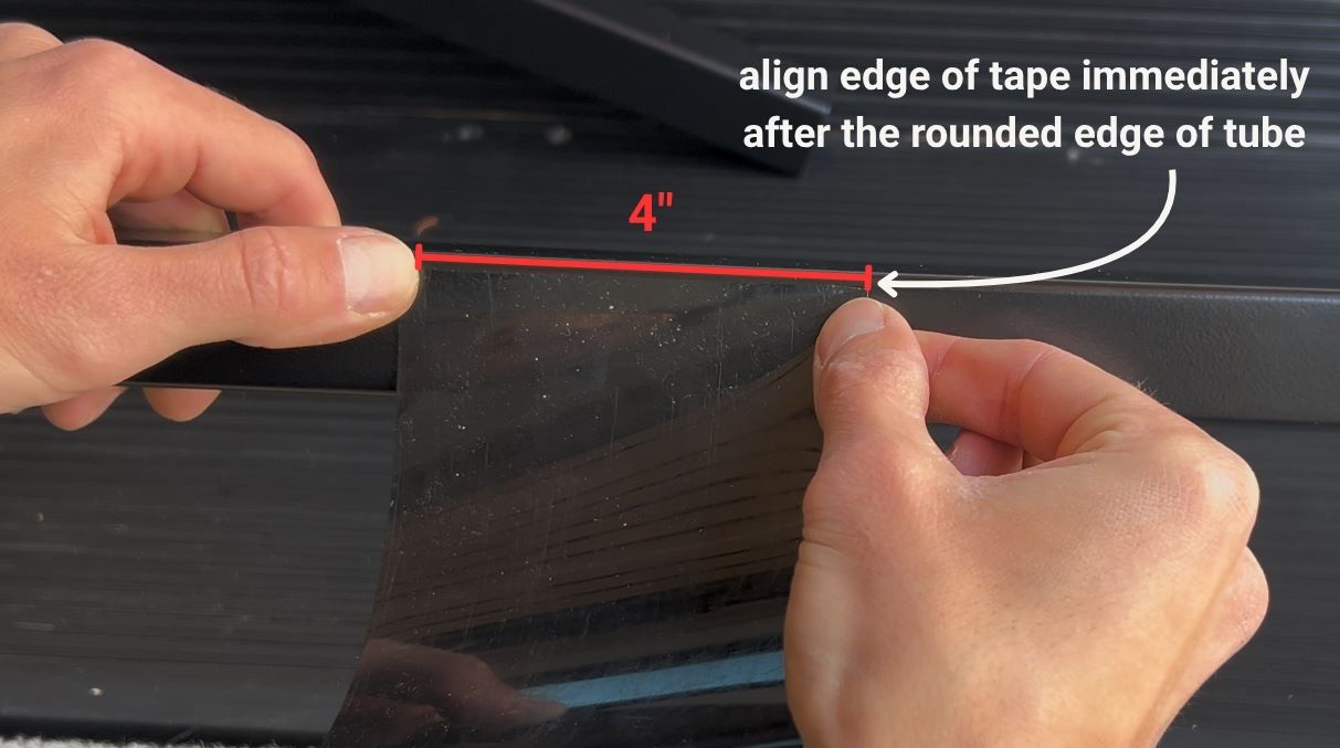 - Align the short edge (4″) of the tape with the point where the rounded corner of the tube flattens out.